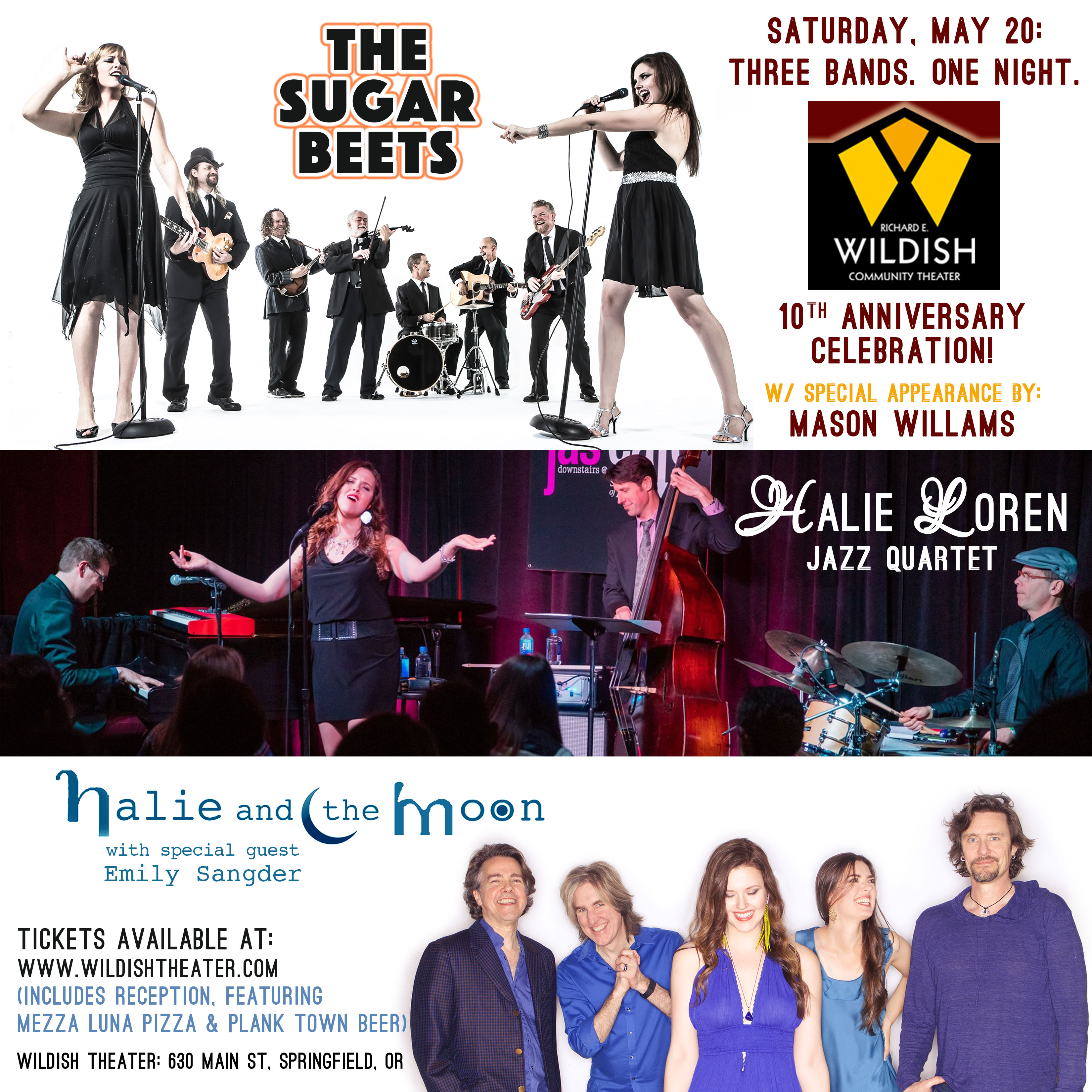 See Halie Loren perform in three separate bands on May 20th in celebration of the Wildish Theater’s 10th anniversary!